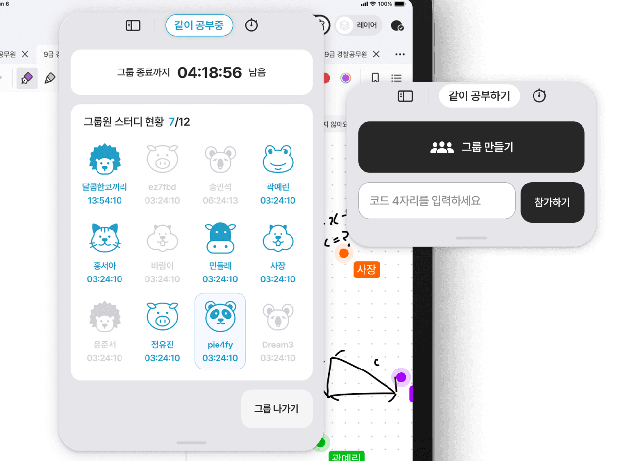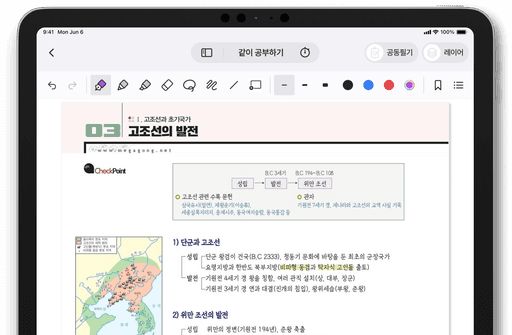 친구와 같은 책에서 실시간으로 필기하며 공부할 수 있어요