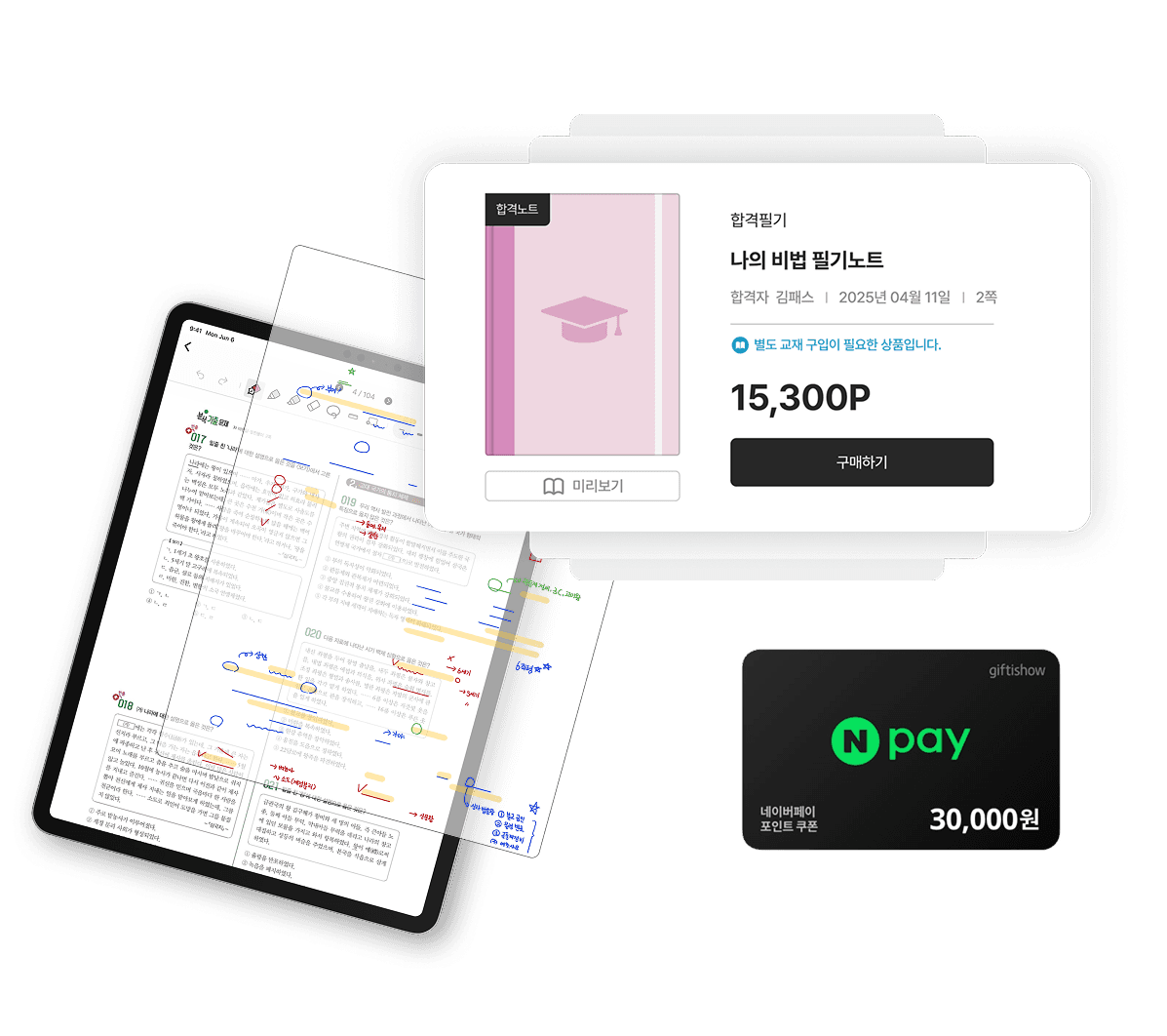 합격자의 필기를 참고하거나, 내 노트를 판매할 수 있어요