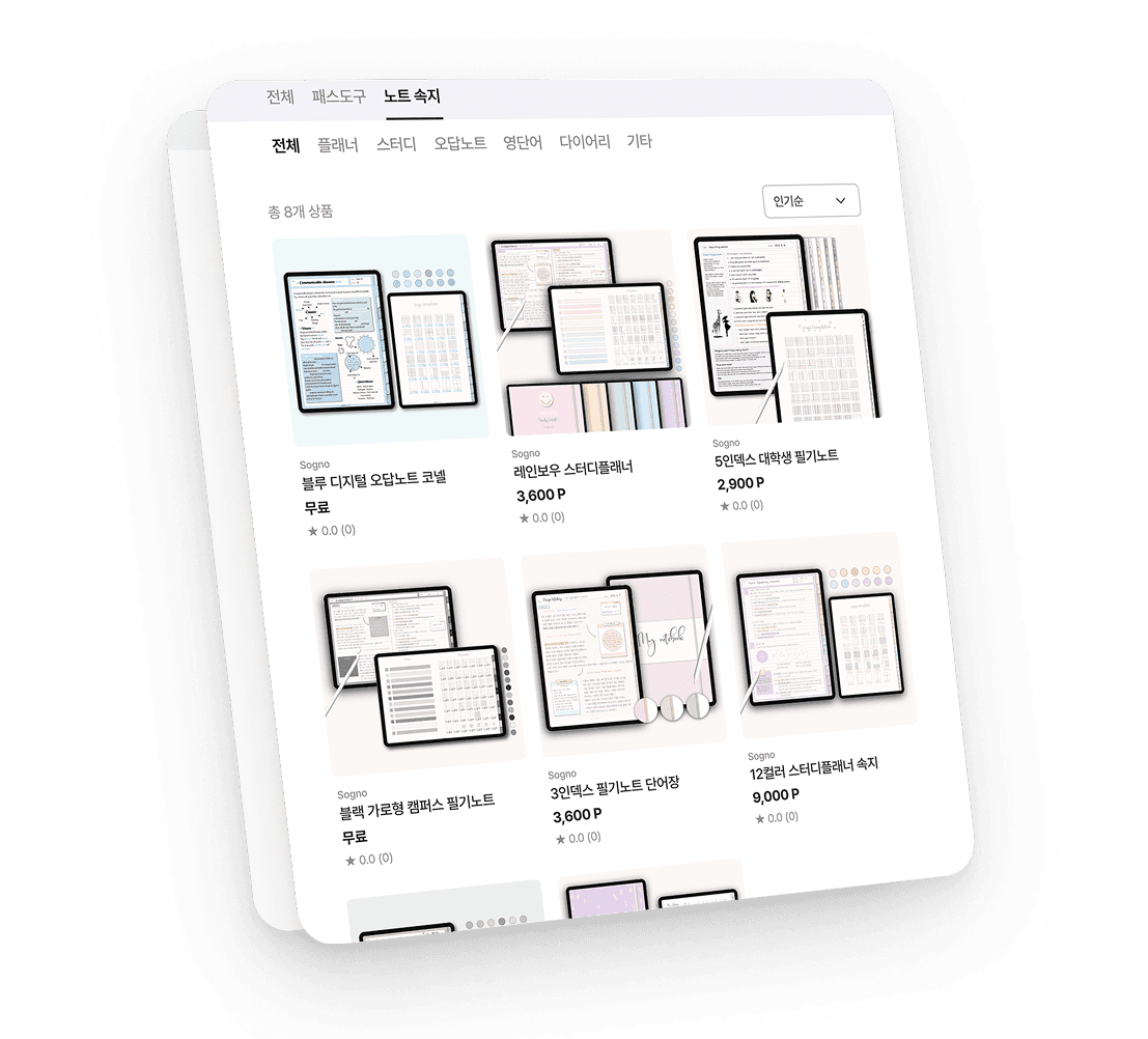 필요한 속지를 스토어에서 받아볼 수 있어요