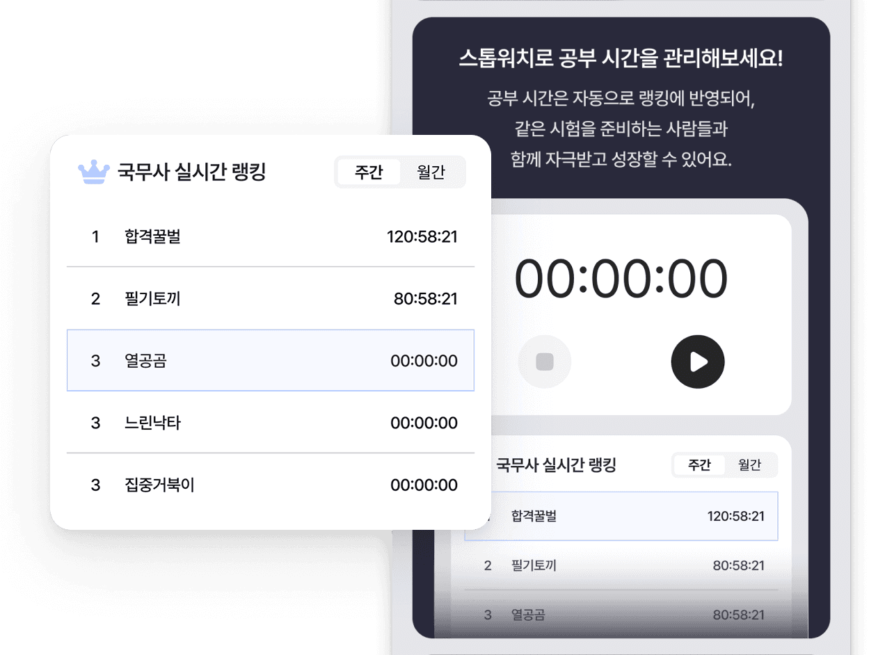 순공 시간을 측정해서 랭킹으로 확인할 수 있어요